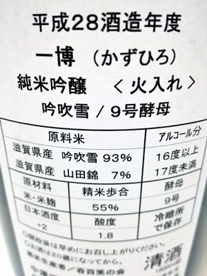 穏やかな香りと円みのある飲み口、一博らしいギュッと詰まった力強く濃醇な味わいが後口は切れ上がります。