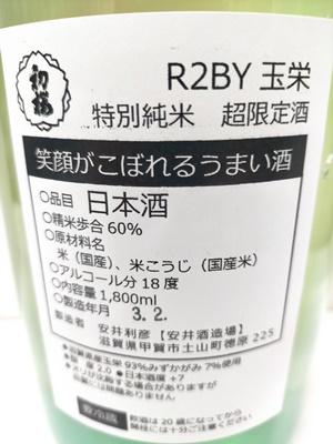 初桜 特別純米 玉栄 生原酒 R2BY 超限定直汲み 1800ml