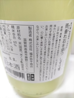 昨年も大好評のうちに完売しました「雨垂れ石を穿つ」、今年も予約限定のうすにごり生酒での蔵出開始です。