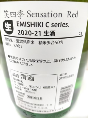 笑四季 センセーション 朱ラベル 生酒 2019-20