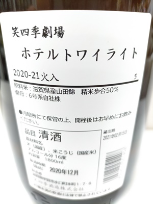 先ずは笑四季お得意の6号系自社酵母で醸した「ホテル トワイライト」火入れ