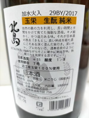 北島酒造 生酛純米 滋賀旭 エン 火入 R1BY 1800ml