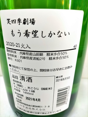 まさに希望しかない笑四季自信の低アルコール夏酒です