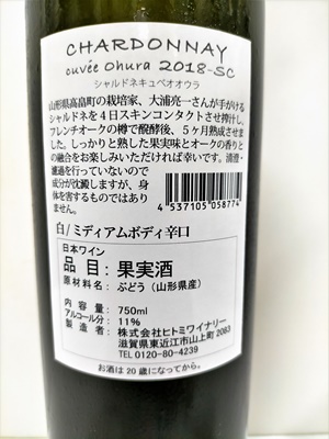 CHARDONNAY cuvee Ohura シャルドネ キュベオオウラ 2018-SC 白