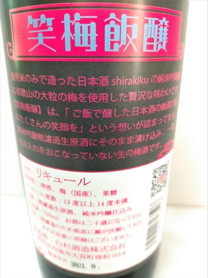 食用米のみで造った日本酒shirakikuの純米吟醸酒に和歌山の大粒の梅を使用した贅沢な味わいです。