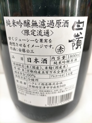 今までのハクレイにない商品を!との熱い想いから企画された、ラベルも味わいも鮮やかな無濾過原酒火入です