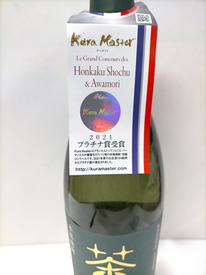 Kura Master本格焼酎・泡盛コンクール 2021 芋焼酎部門プラチナ賞、審査員賞、最高賞のプレジデント賞もあわせて受賞。