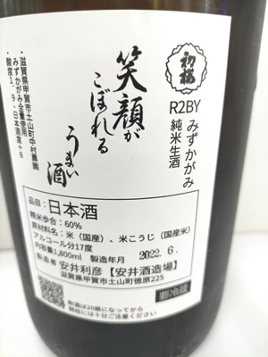 | 製造元 | 安井酒造場(滋賀県甲賀市土山町) |