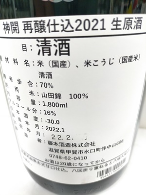 神開 再醸仕込2021 無濾過生原酒