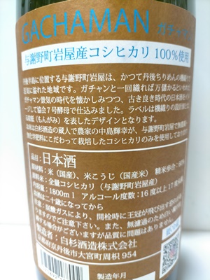 白木久 純米無濾過生原酒 GACHAMAN ガチャマン