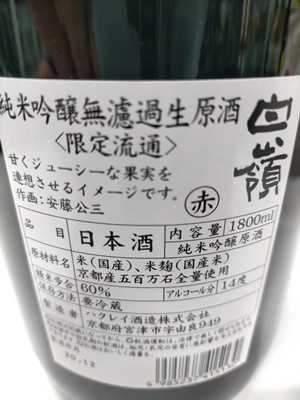 今までのハクレイにない商品を!との熱い想いから企画された、ラベルも味わいも鮮やかな無濾過生原酒です