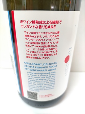 フランス産米、超硬水、ワイン酵母で造った日本酒をフランス・ブルゴーニュの名門「ドメーヌ・ジャック・プリウール」でピノ・ノワールの熟成に使われたオーク樽(BARREL)で熟成させたお酒