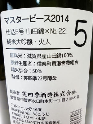 いわゆる「香り系」(この前の4号が特にそうでしたが)とは違う、味わいを楽しむ純米大吟醸となっています。
