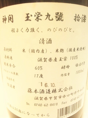 | 製造元 | 藤本酒造(滋賀県甲賀市) |
